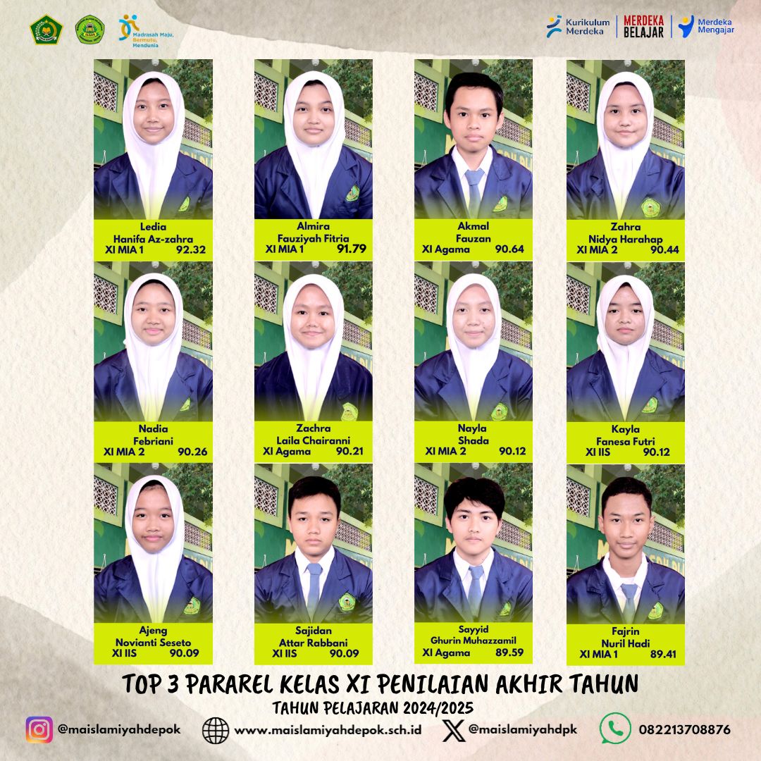 Pembagian kelas ini diharapkan dapat menciptakan lingkungan belajar yang kondusif dan sesuai dengan kebutuhan masing-masing siswa. MA Islamiyah Sawangan Depok berkomitmen untuk terus memantau perkembangan siswa dan melakukan penyesuaian jika diperlukan, sehingga setiap siswa dapat meraih prestasi optimal baik dalam aspek akademik maupun spiritual.